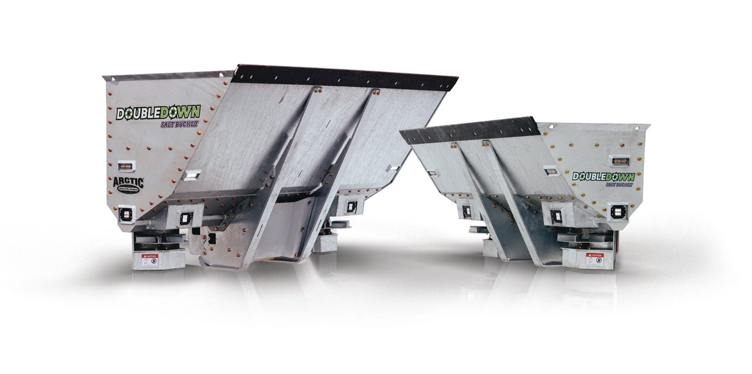Left-right augers and spinners allow operators to control density and distance of salt on either side independently. Low ejection ports provide salting under cars, up to 40 feet in each direction. Made with galvanized steel, buckets include high visibility LED side operating lights and safety strobes. Available in two sizes, each with LCD control panel.