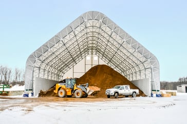 Britespan's tension fabric buildings allow you to store more salt for less overall cost, and in less space. Our Magnum series uses proprietary engineering and independent piers to support the structure, while the retainer wall on the inside of the building contains the salt, decreases foundation costs. Contact your salt storage specialist today!