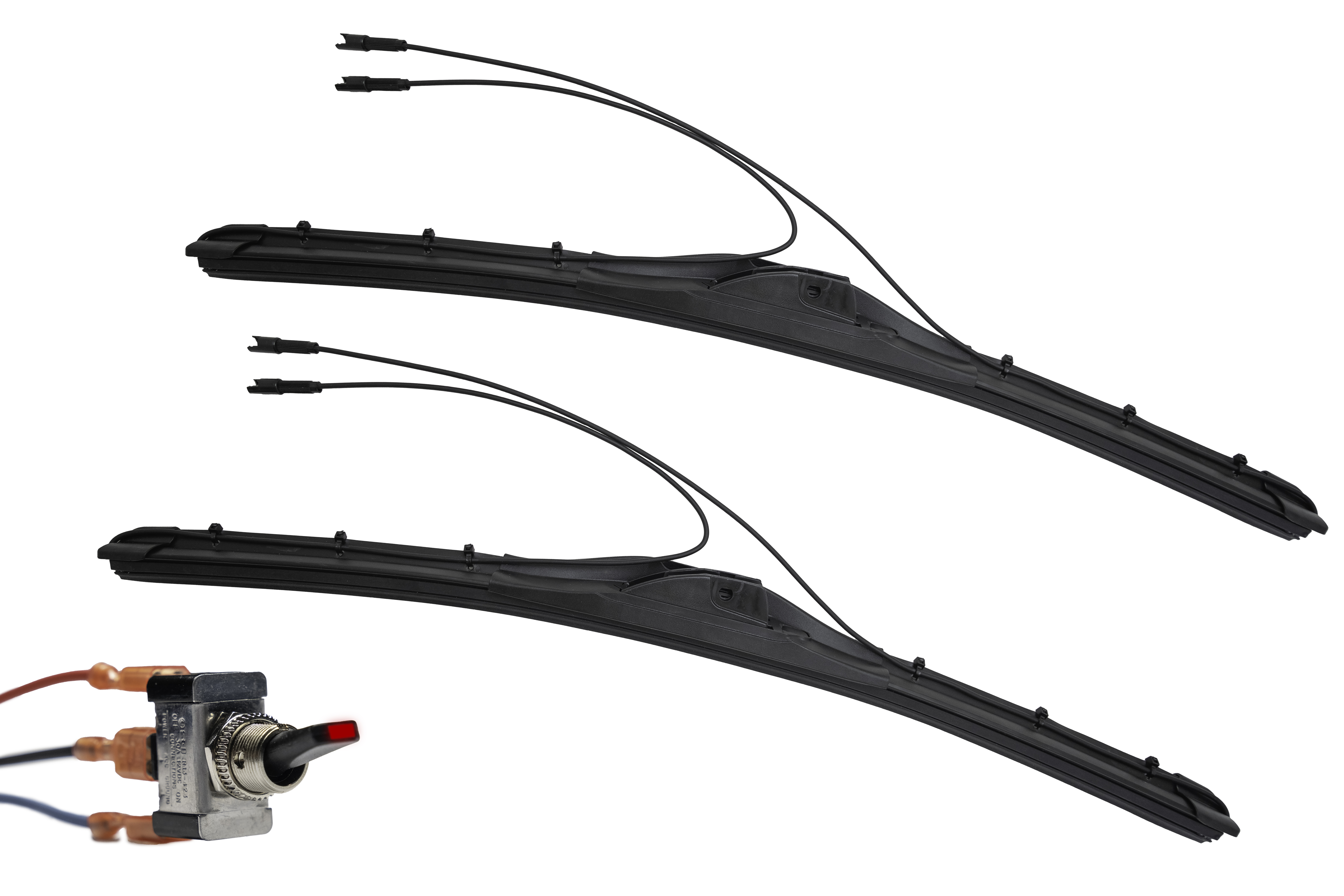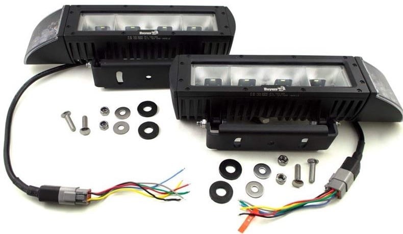These universal LED snowplow lights can be retrofitted to any snowplow with a little electrical splicing. 45 watt high beams, 25 watt low beans, 20 watt auto heating function, 3 watt turn signal, 5200-5700K color temp, 6 pin deutsch connector, heated and tempered glass lens to prevent snow and ice build up, powder-coated die-cast aluminum, universal to most plow setups using a dual mount.