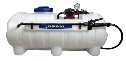 The Chapin 97408E EZ Mount ATV/UTV Sprayer is designed for spraying brine to pre-treat and de-ice walkways and steps. Features include a 25 gallon chemical resistant tank, wide tank opening for easy filling, 2.2 GPM 12-volt diaphragm pump, 15 ft. reinforced hose, and a triple filtration system.