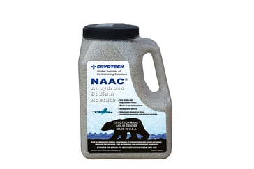 Cryotech NAAC solid deicer is a 97% anhydrous sodium acetate containing less than 1% corrosion inhibitors. NAAC is fast-acting, has long residual effects, works to low temperatures, and is safe for the environment. As a non-chloride deicer, it is ideal for use on bridges, sidewalks, parking garages, and other steel-reinforced concrete structures.