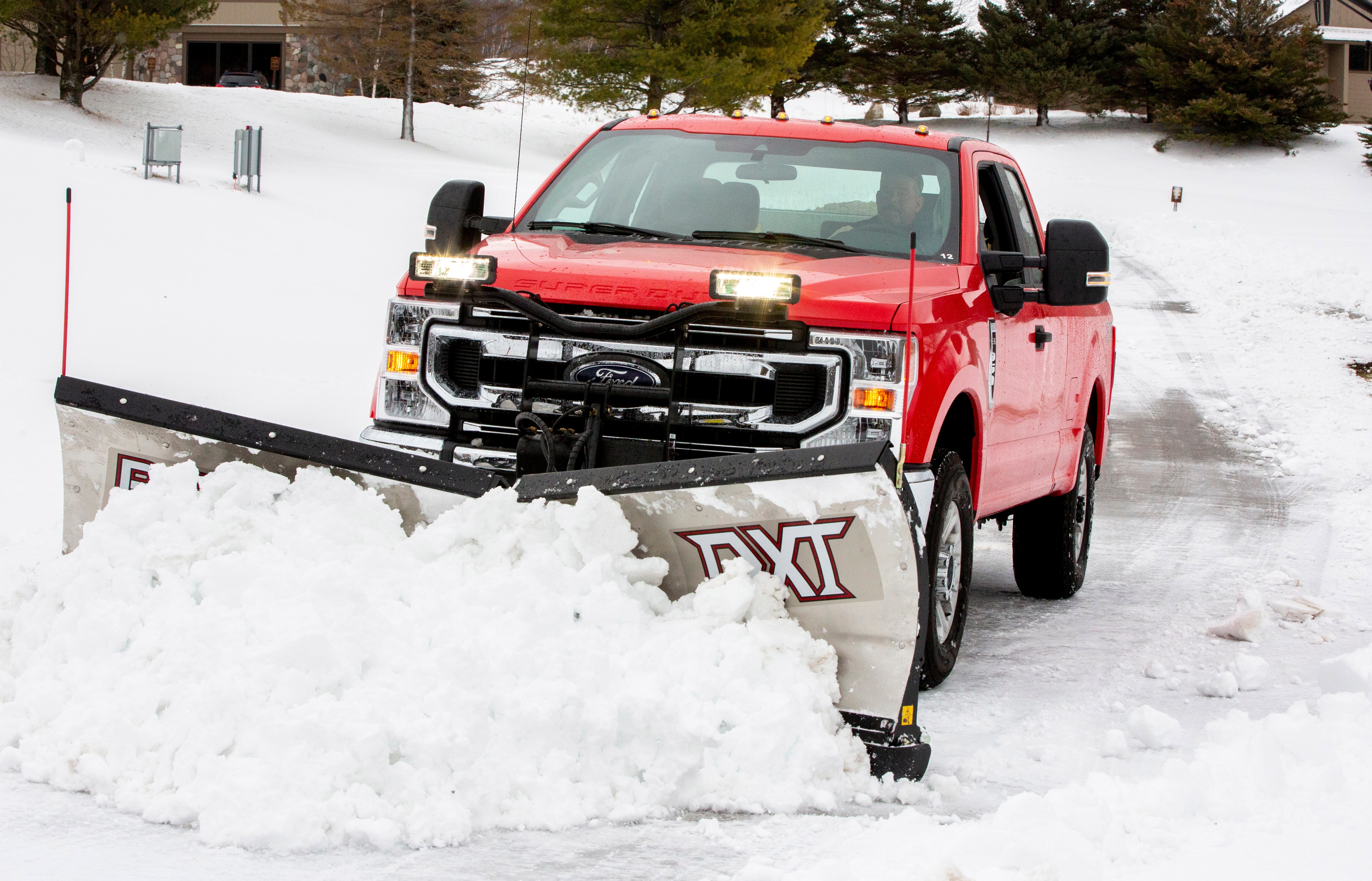 The 2021 F-Series Super Duty is Built Ford Tough and ready to be put to work. With its available snowplow prep package, the series features best-in-class maximum 1,400-pound snowplow rating (accounting for mounting hardware) for gasoline-powered trucks and a maximum 1,290-pound plow rating for diesels. Other features include a windshield wiper deicer, heated steering wheel and heated seats.