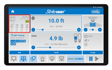 Hilltip’s NEW StrikeSmart™ PLUS is a next generation control system. This system gives you up-to-the-minute weather forecasts tailored to your location. If used with the TEMPSTRIKER™ sensor factors like temperature, humidity and surface conditions are constantly monitored. Based on the gathered data, HTrack™ sends real-time spreading recommendations directly to the StrikeSmart™ controller.