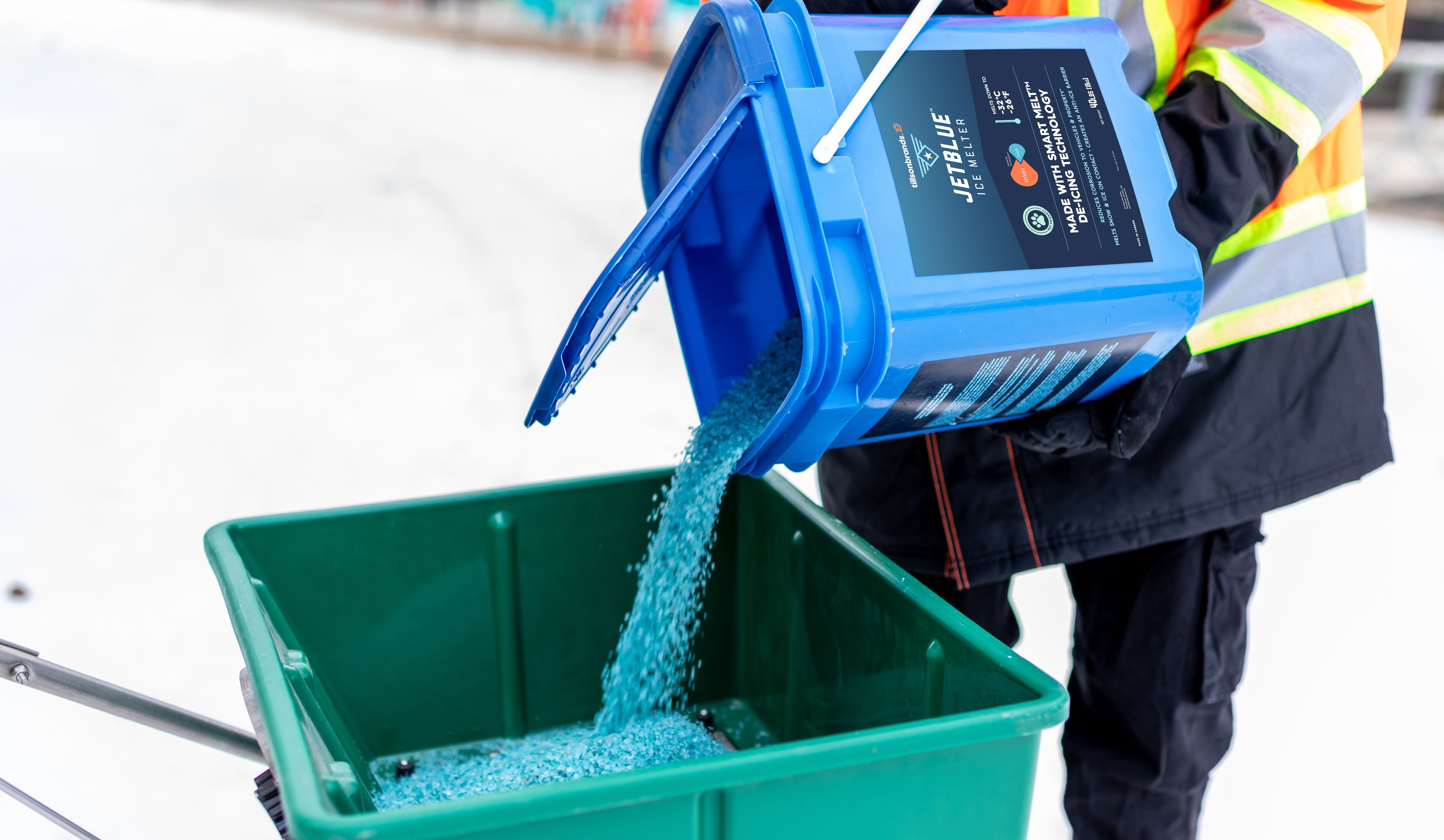 JETBLUE™ Ice Melter is made with SMART MELT™ de-icing technology. JETBLUE™'s unique formulation allows for faster and longer lasting ice melting capability, while sparing your vehicles & property the corrosion and toxicity found when using traditional road salt. Its low application rate, bright colour and superior ice melting ability will make sure you have the edge on winter's worst storms.