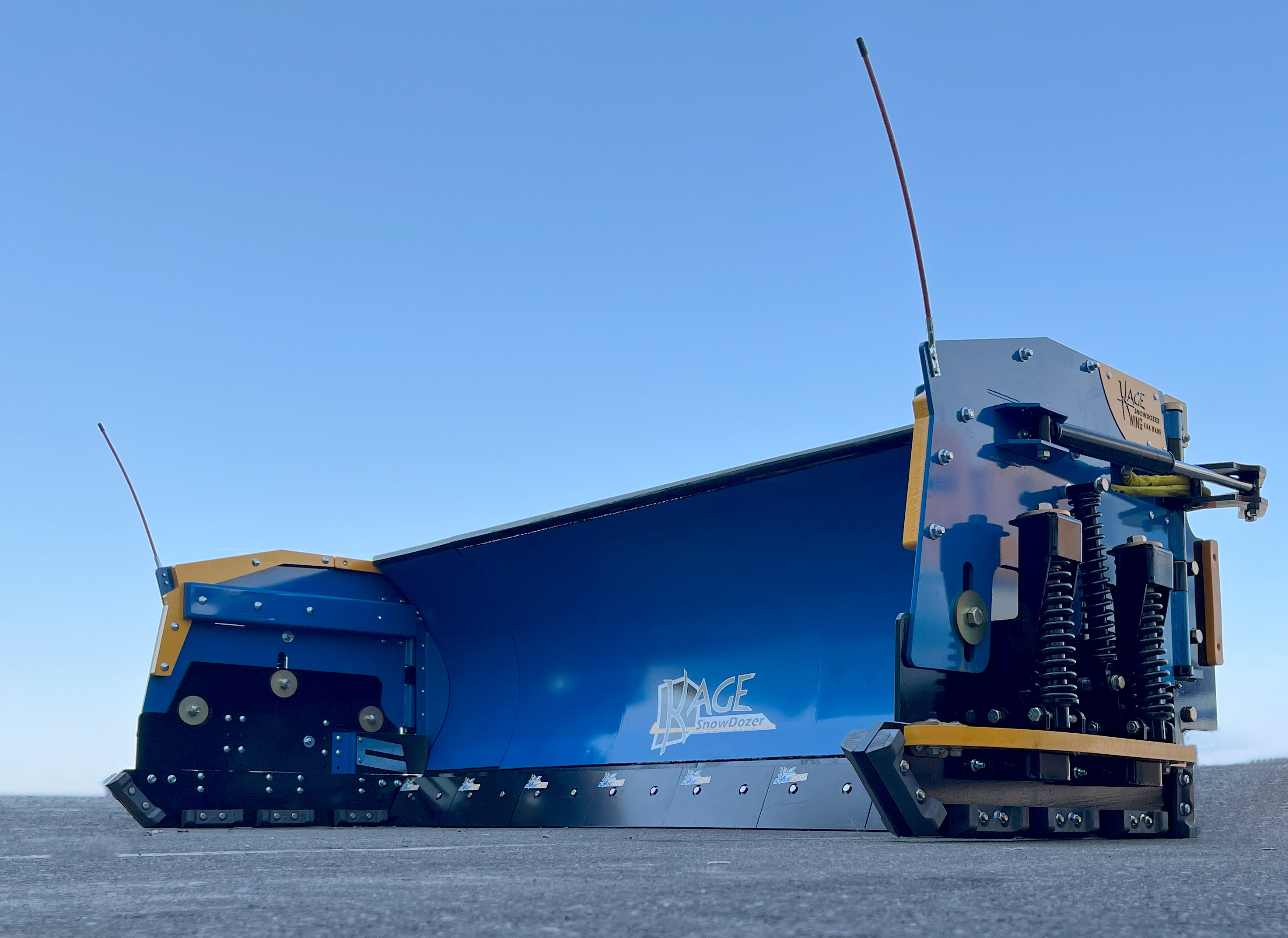The largest American-made hydraulic wing plow, KAGE's SnowDozer Wing is available up to 28 feet wide. The SnowDozer wing is compatible with 30K- to 50K-pound wheel loaders and 300+ horsepower tractors. With heel and toe float in the wing skids, uneven wing wear is a thing of the past!