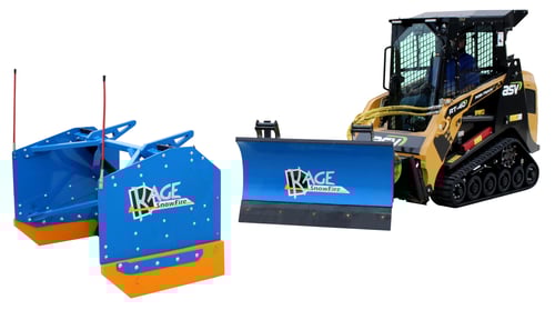 The proven KAGE SnowFire 2-in-1 snow plow and pusher system is now available in a 54-Inch size, making it a valuable tool for clearing sidewalks. Angle plow, back drag, push and stack without leaving the cab or controls.