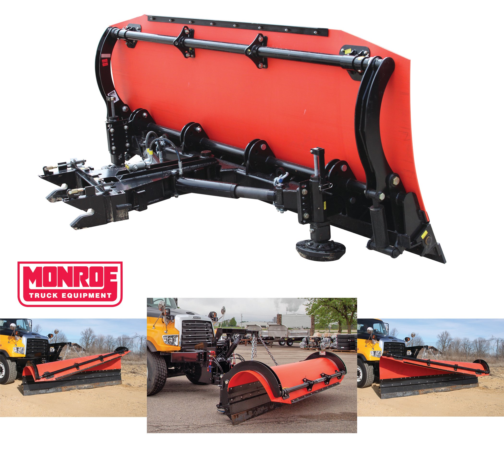 Monroe Truck Equipment’s Flex Plow allows drivers to adjust the moldboard profile to the right, middle or left, from the comfort of the truck cab. The polyurethane plow can also tightly curl down from both sides keeping light, dry snow from blowing back toward the grill or freezing the radiator.