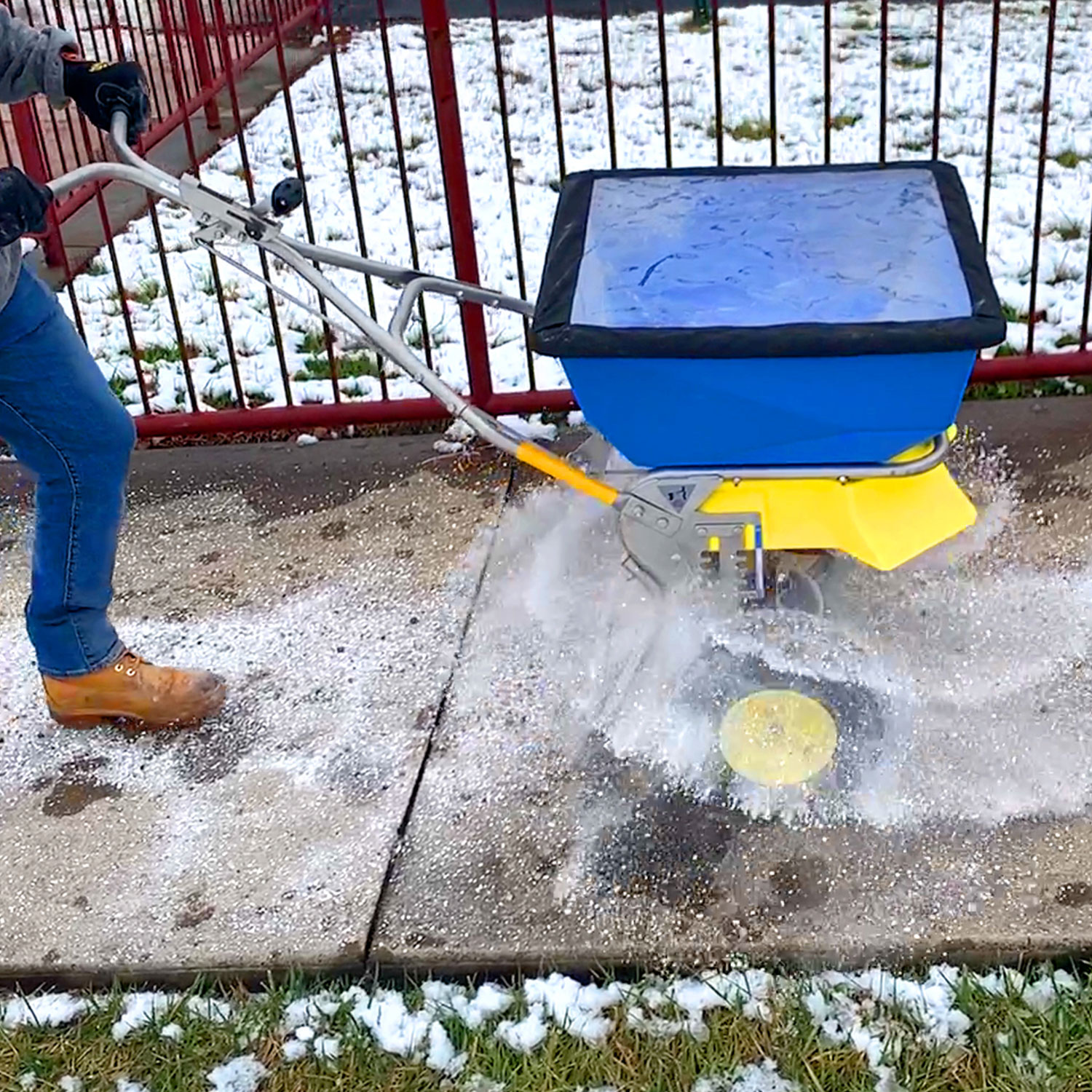 The 100-lb. capacity Spyker ERGO-PRO™ Walk-Behind Salt Spreader is ideal for tough winter jobs, as it is capable of spreading salt, ice melt and more. This salt spreader features a stainless steel carving blade to slice through dense materials like ice melt and rock salt, and has a reflective frame.