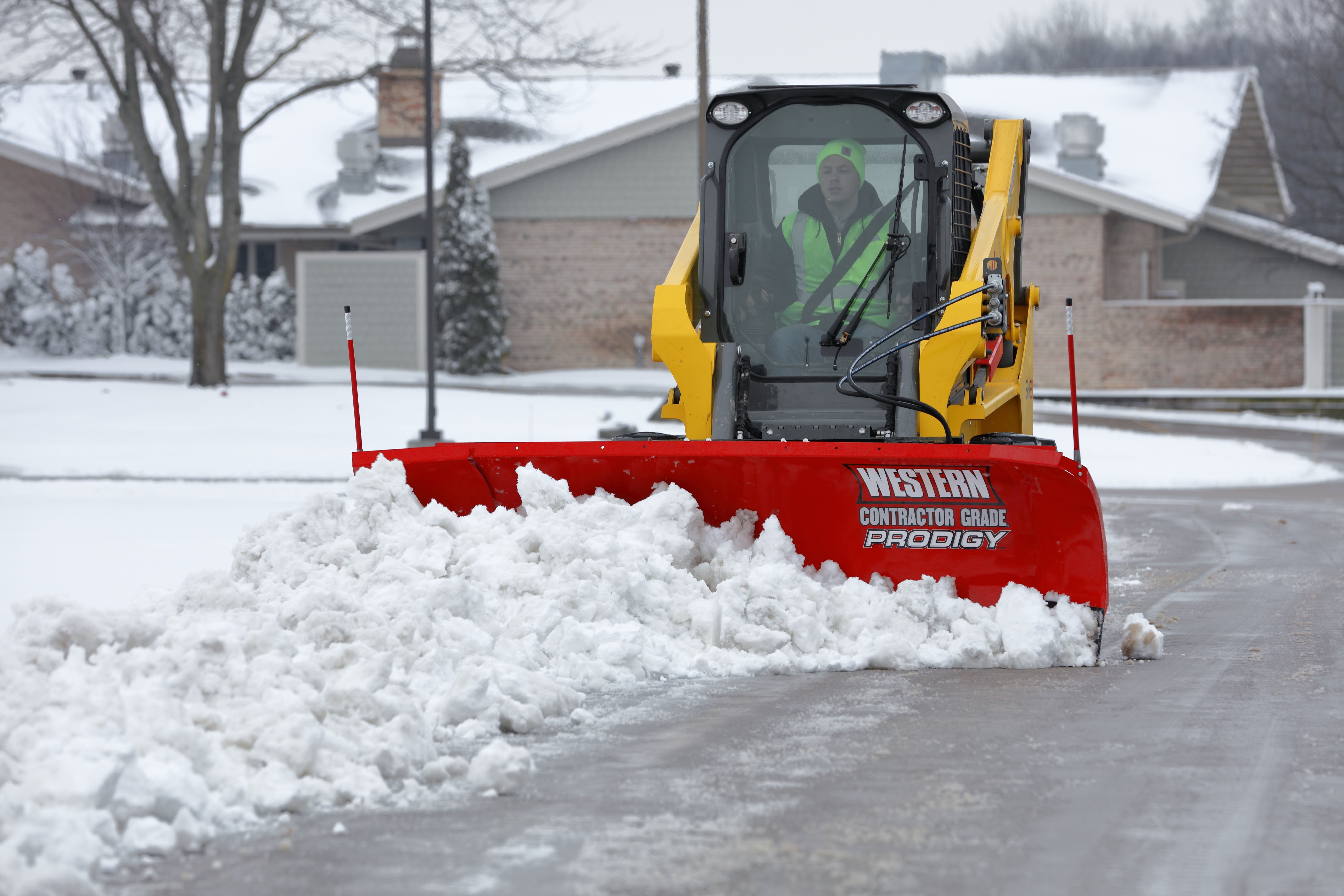 The PRODIGY™ snowplow features patented wing technology that makes even novice snow plowers more productive. The automatic movement of the wings is ideal for skid-steer operation because it provides wing plow performance with no additional wiring or controls. The universal skid-steer mounting plate makes hook-up fast and easy. Simply align the mounting plate with the skid-steer u-plate, engage the pins, and you’re ready to plow. The PRODIGY skid-steer plow leverages the onboard hydraulic system of the skid-steer to lift and lower the blade for improved operator performance. It’s also available with an optional oscillating mount that provides six degrees of total side-to-side oscillation, helping improve scrape and cutting-edge wear while reducing damage to the terrain.